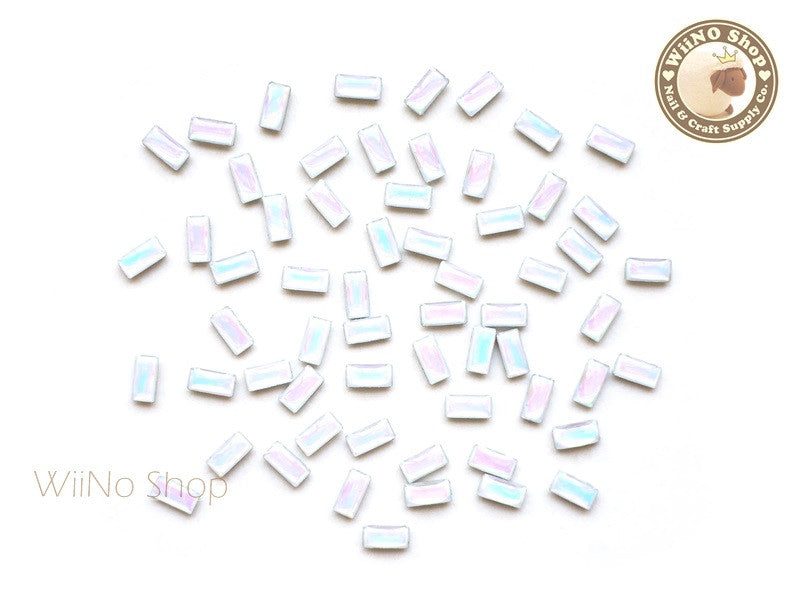 3 x 5mm AB Rainbow Opal Rectangle Flat Back Acrylic Cabochon Nail Art - 10 pcs