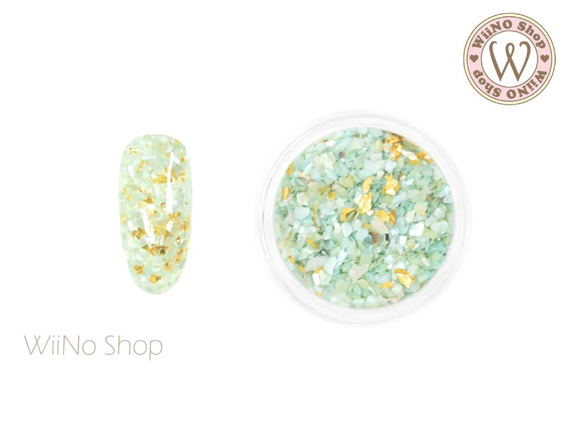 Mint Crushed Shell with Gold Foil Nail Art Decoration