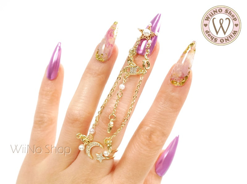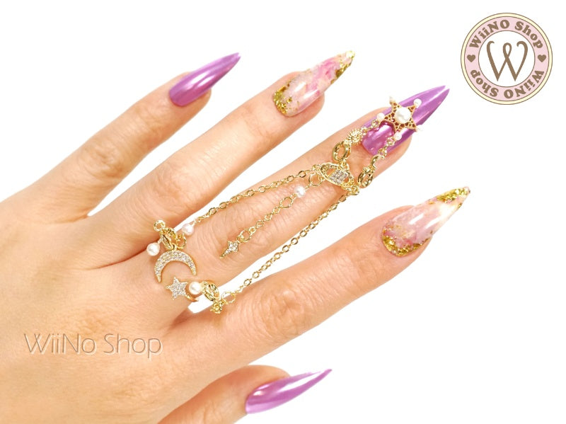 Star Moon Crystal Chain Nail Ring - 1 pc