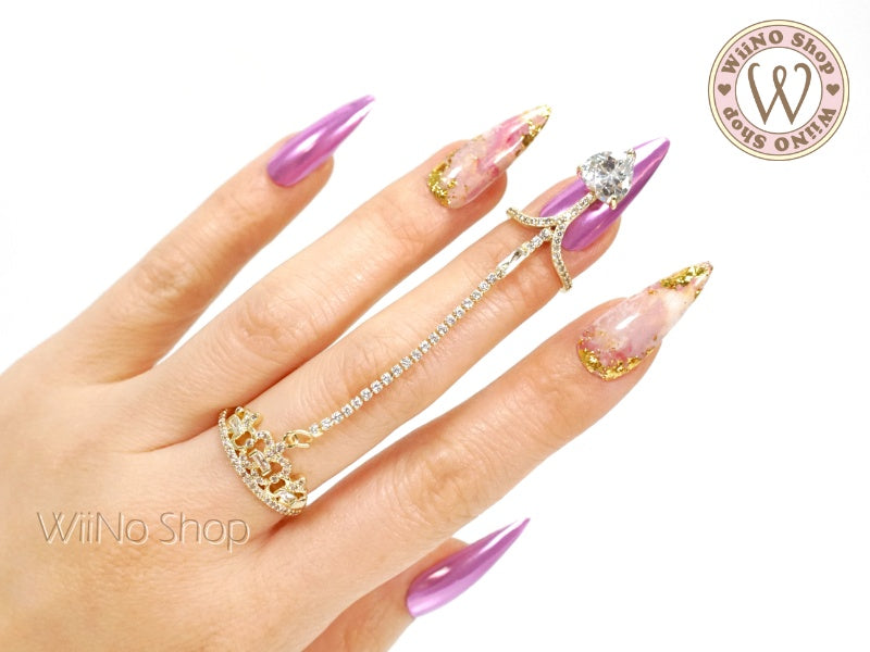 Gold Diamond Ring Nail Metal Charm - 2 pcs