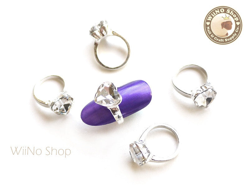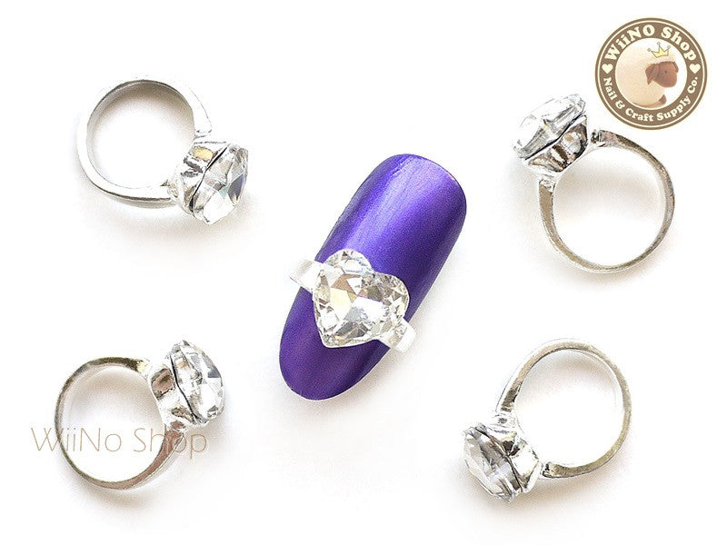 Heart Silver Diamond Ring Nail Charm - 2 pcs (L)