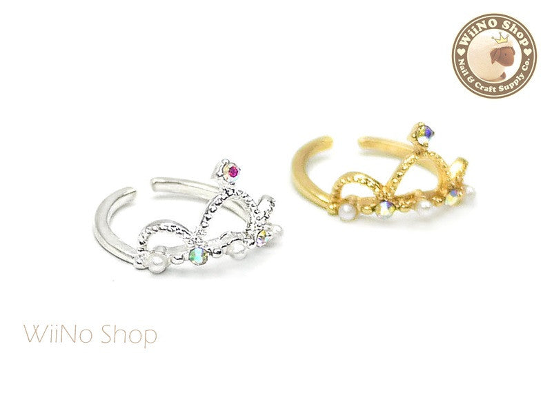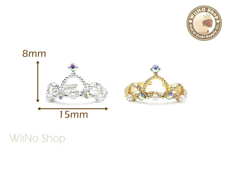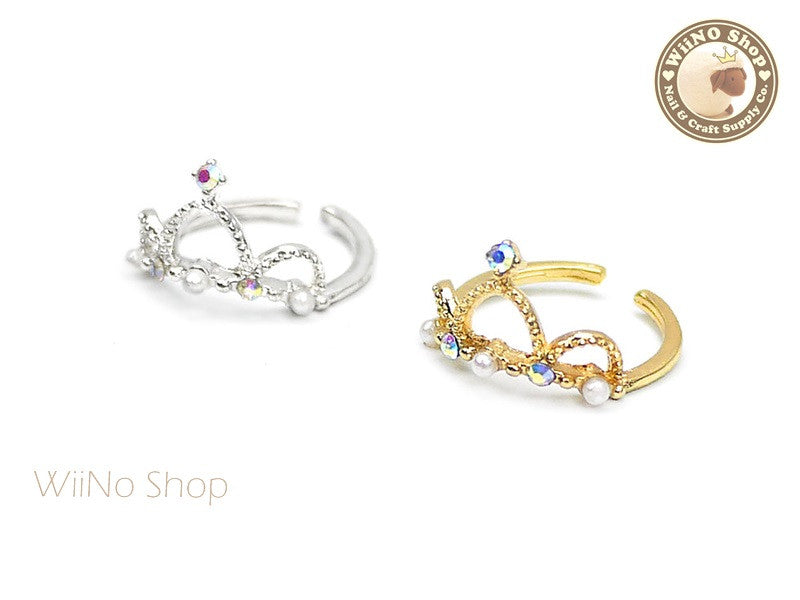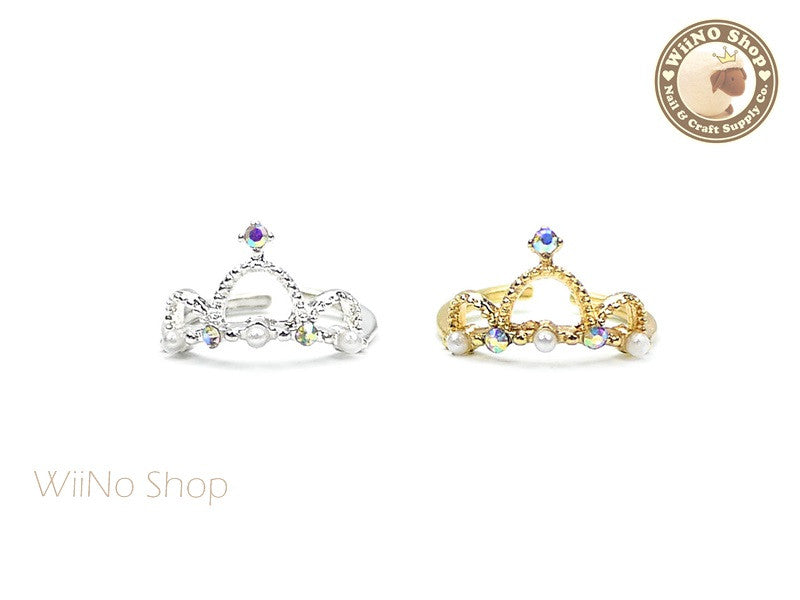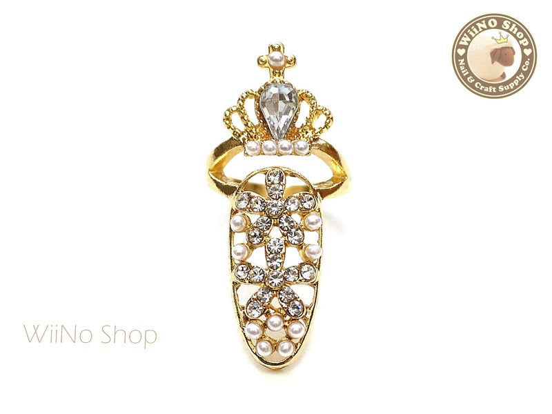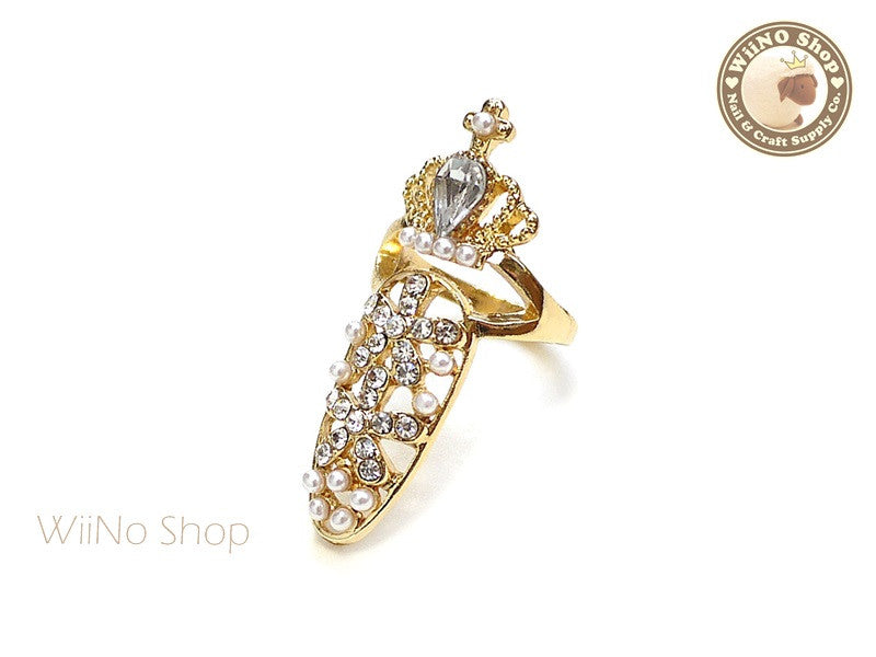 Gold Crown Pearl Hollow Nail Tip Ring - 1 pc