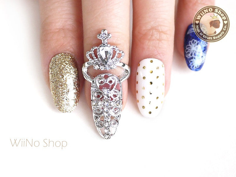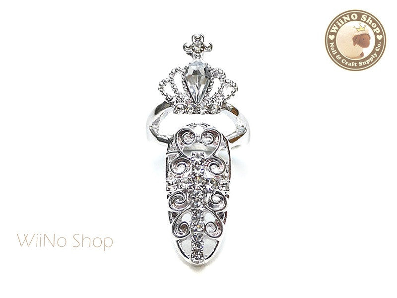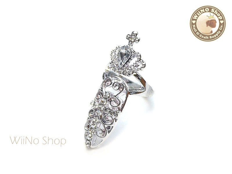 Silver Crown Hollow Nail Tip Ring - 1 pc