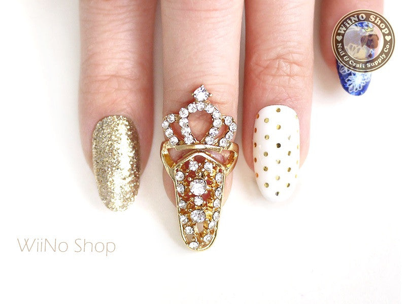 Gold Crown Hollow Nail Tip Ring - 1 pc