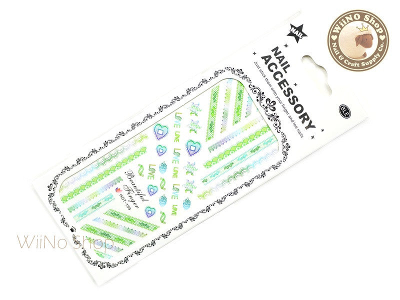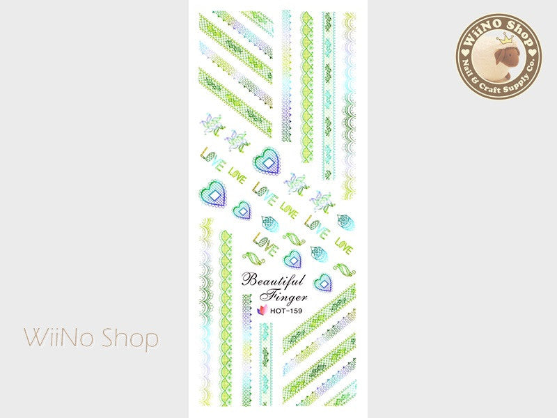 Green Gradient Lace Pattern Water Slide Nail Art Decals - 1pc (HOT-159)