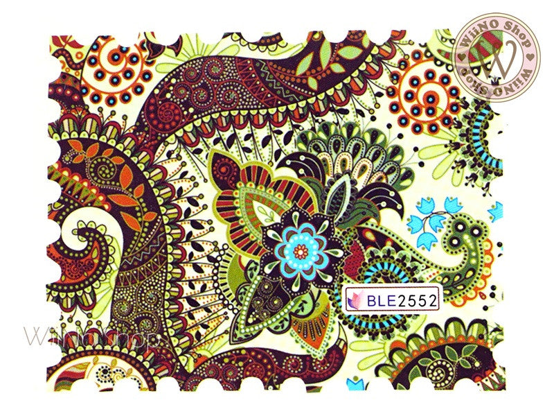 Paisley Pattern Water Slide Nail Art Decals - 1pc (BLE2552)