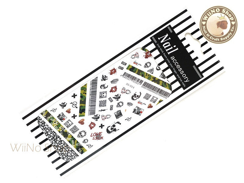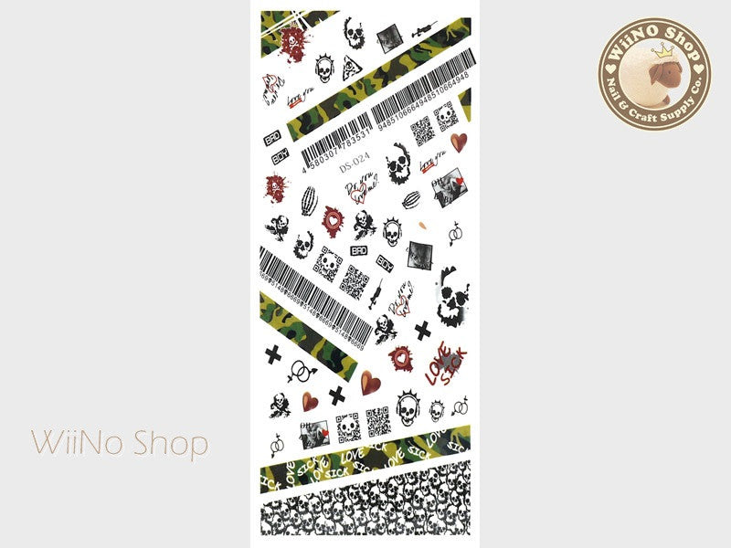 Camouflage Skull Water Slide Nail Art Decals - 1 pc (DS-024)