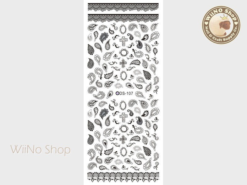 Black Paisley Pattern Water Slide Nail Art Decals - 1 pc (DS-107)