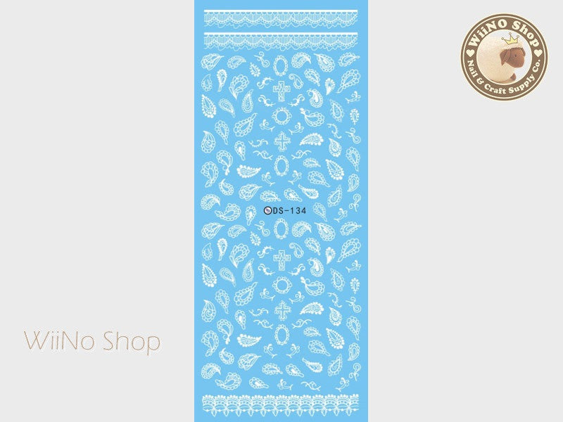 White Paisley Pattern Water Slide Nail Art Decals - 1 pc (DS-134)