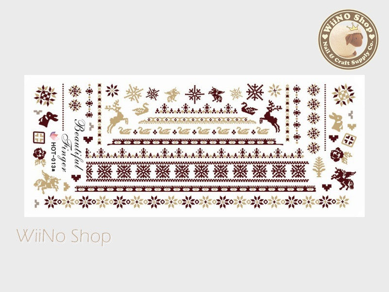 Winter Knit Style Brown Pattern Water Slide Nail Art Decals - 1pc (HOT-013)