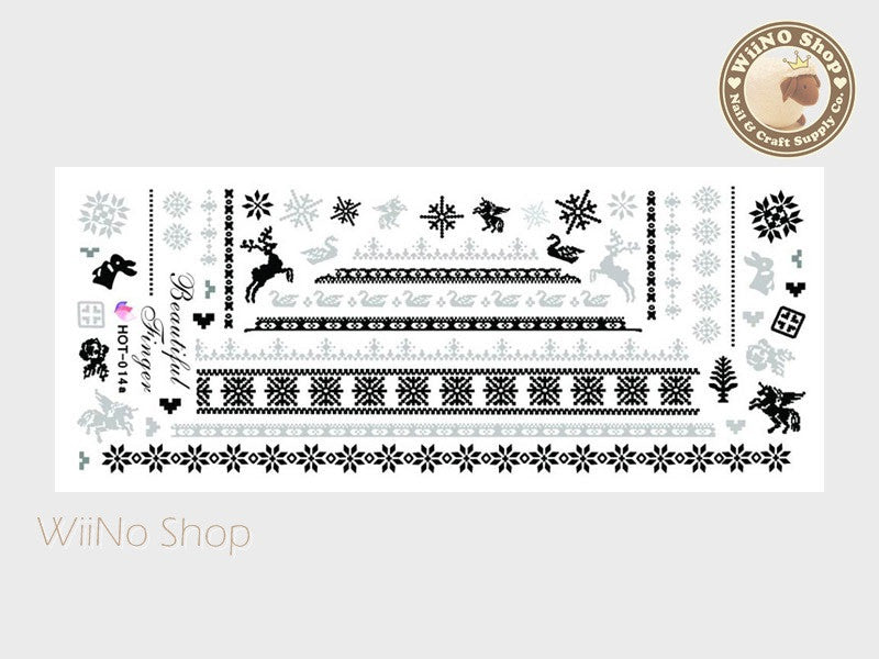 Winter Knit Style Gray Pattern Water Slide Nail Art Decals - 1pc (HOT-014)