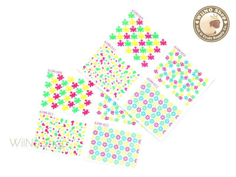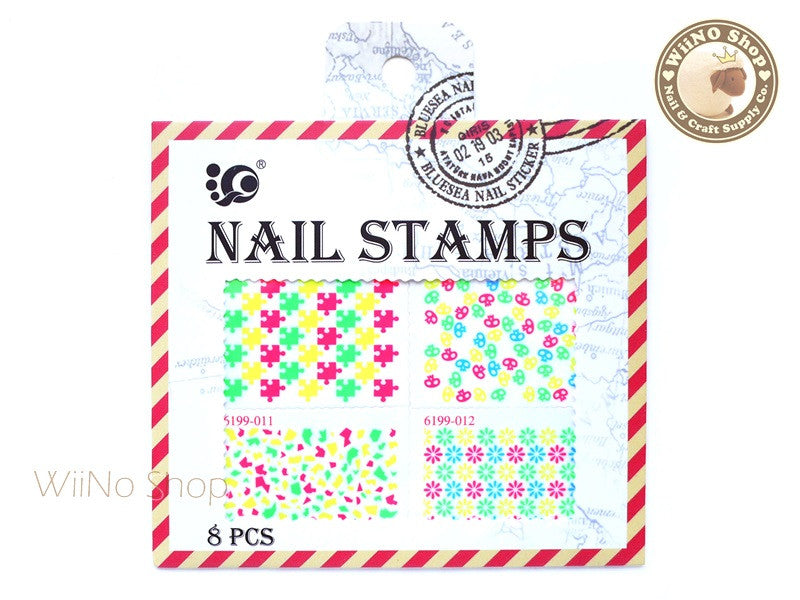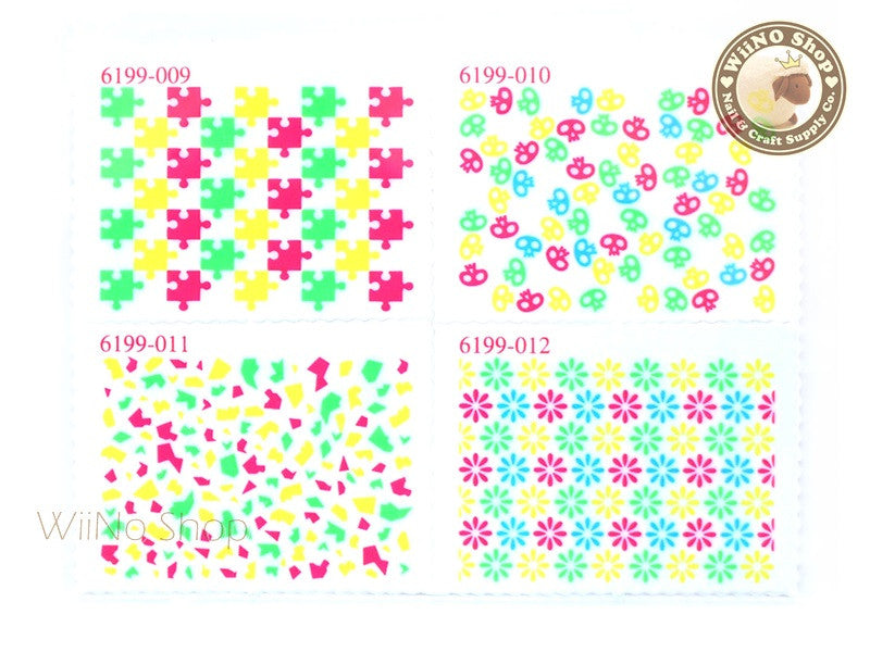 Neon Puzzle Pattern Stamp Water Slide Nail Art Decals - 1pc (BLS03)