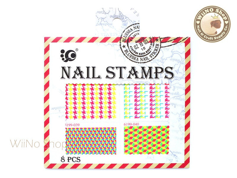 Neon Houndstooth Pattern Stamp Water Slide Nail Art Decals - 1pc (BLS09)