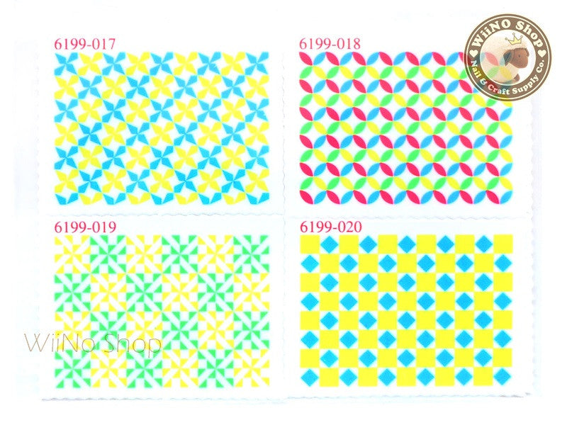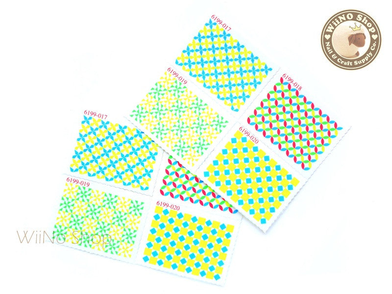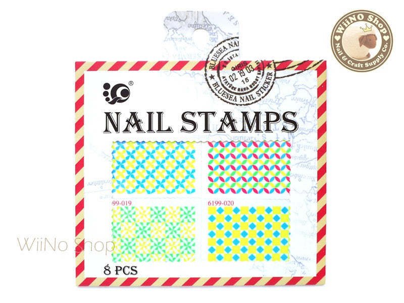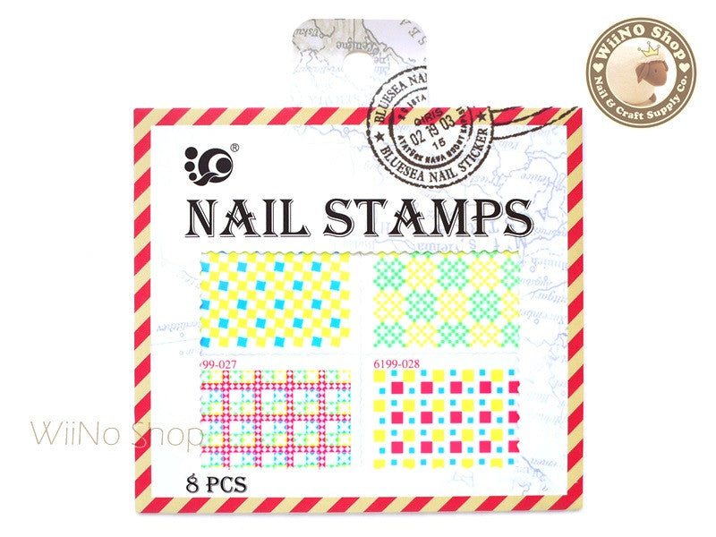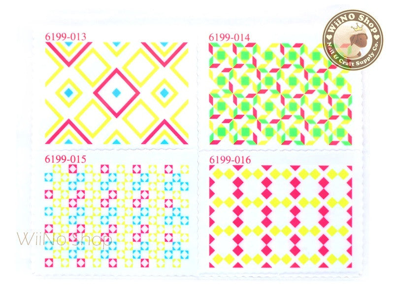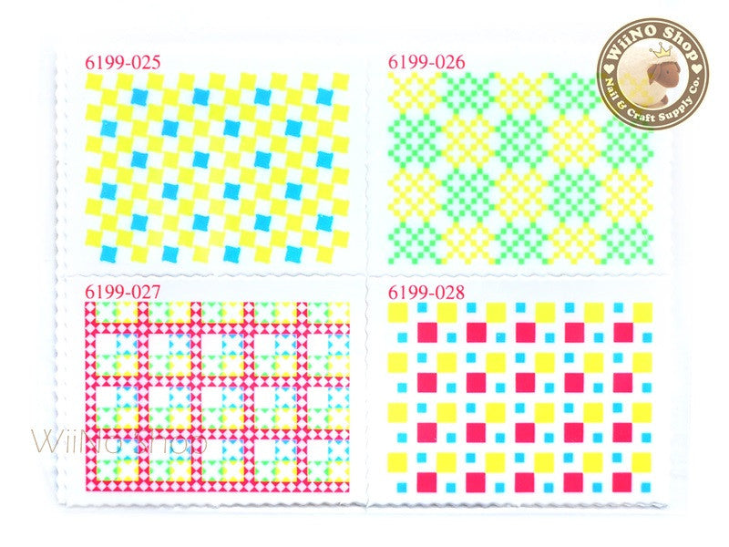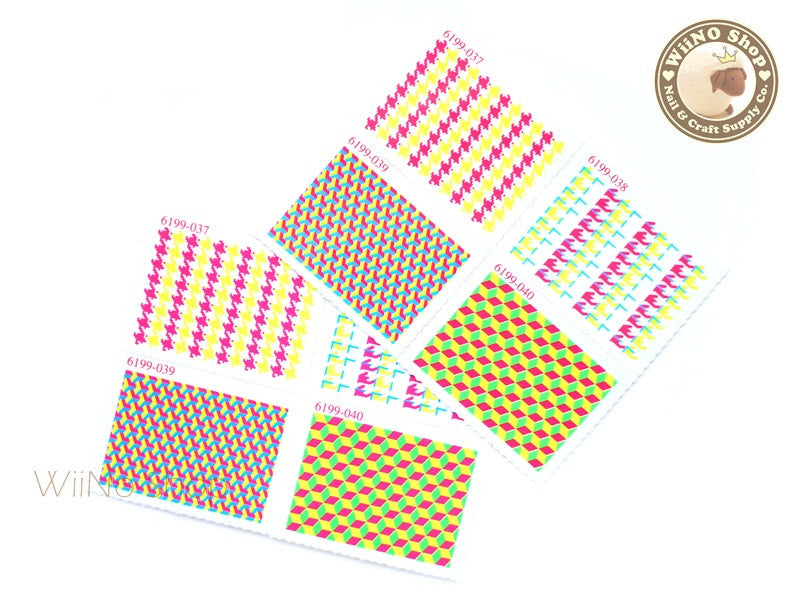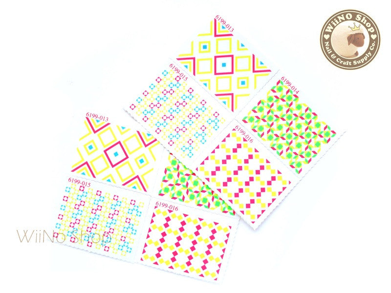 Neon Square Pattern Stamp Water Slide Nail Art Decals - 1pc (BLS04)