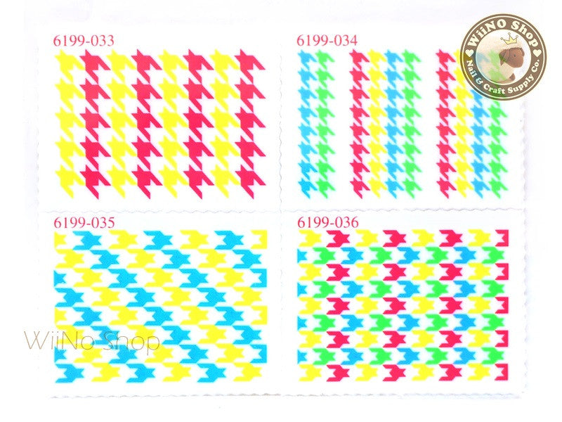 Neon Houndstooth Pattern Stamp Water Slide Nail Art Decals - 1pc (BLS10)