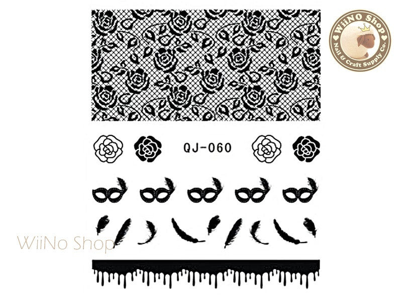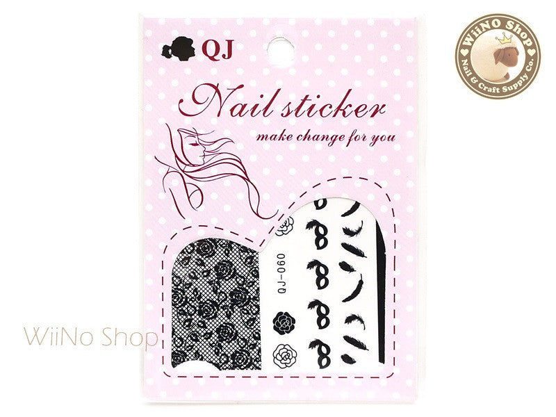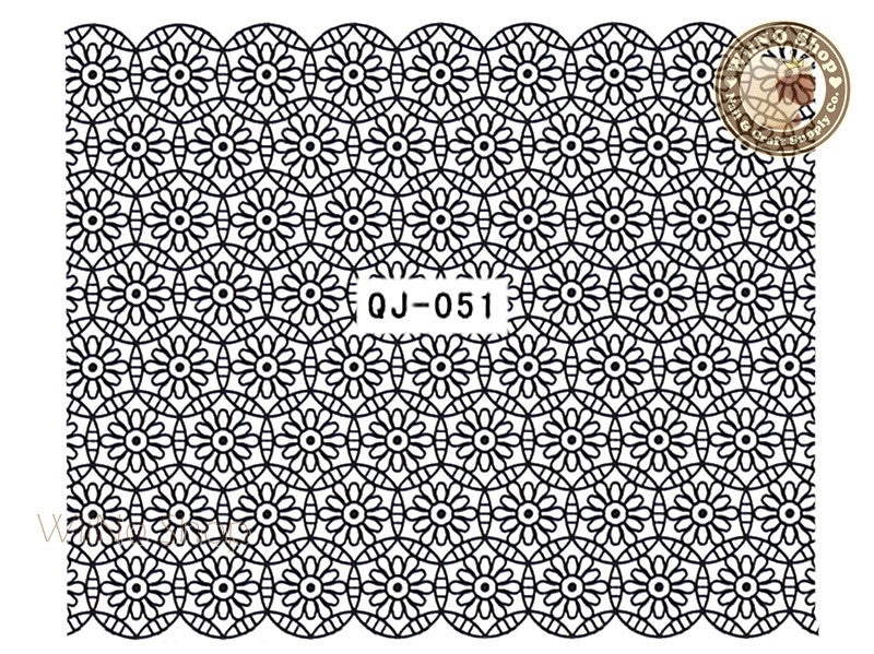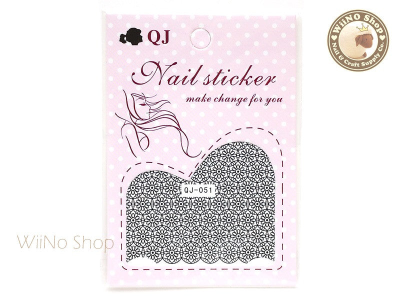 Black Flower Lace Water Slide Nail Art Decals - 1pc (QJ-060)