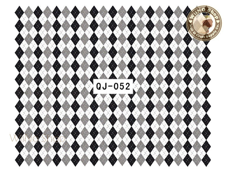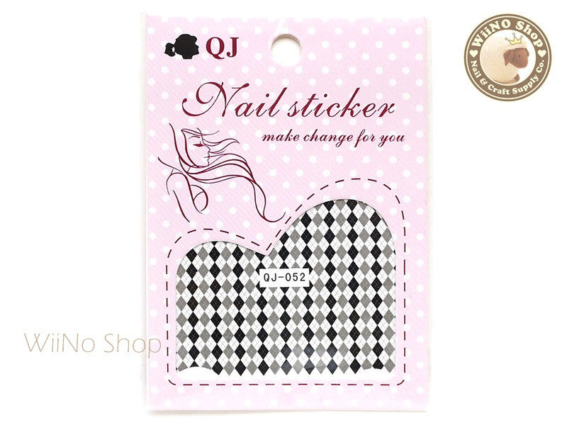 Black Gray Argyle Pattern Water Slide Nail Art Decals - 1pc (QJ-052)