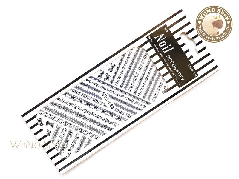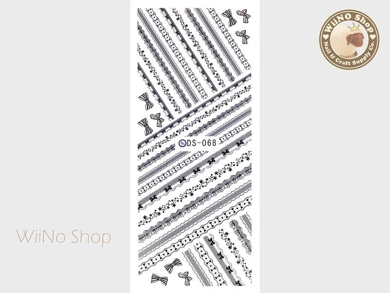 Black Lace Water Slide Nail Art Decals - 1 pc (DS-068)