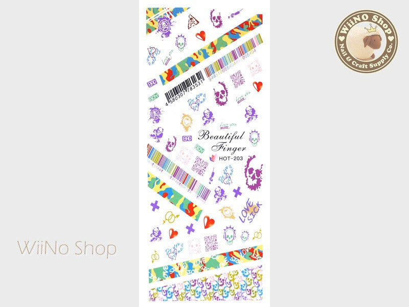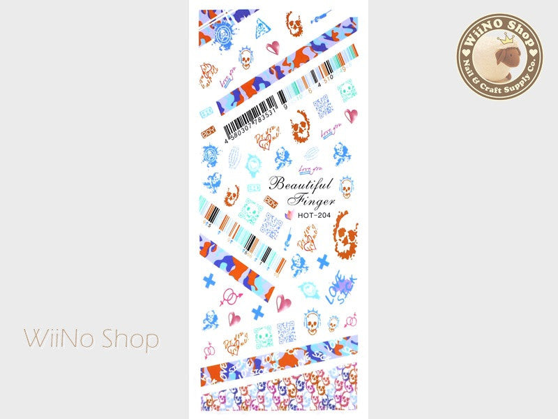 Vivid Camouflage Skull Water Slide Nail Art Decals - 1pc (HOT-203)