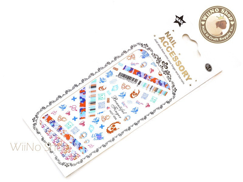 Camouflage Pattern Water Slide Nail Art Decals - 1pc (BLE2145)