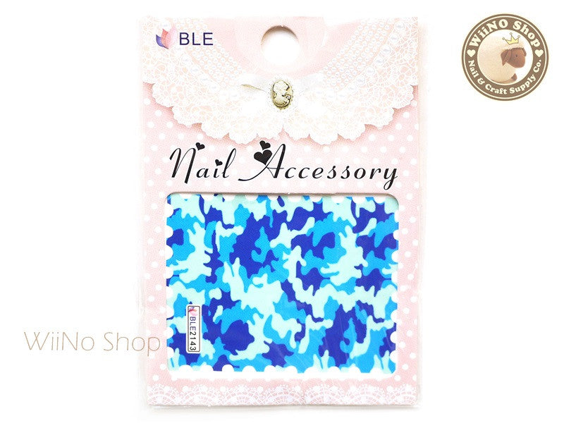 Blue Camouflage Pattern Water Slide Nail Art Decals - 1pc (BLE2143)