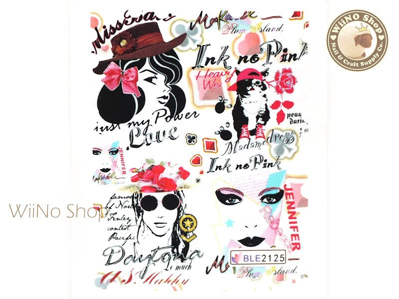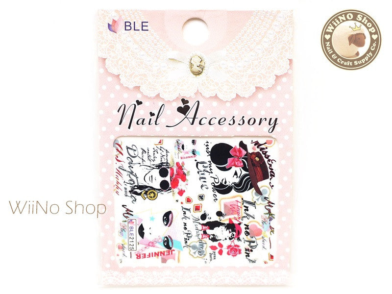 Poster Sketch Water Slide Nail Art Decals - 1pc (BLE2125)