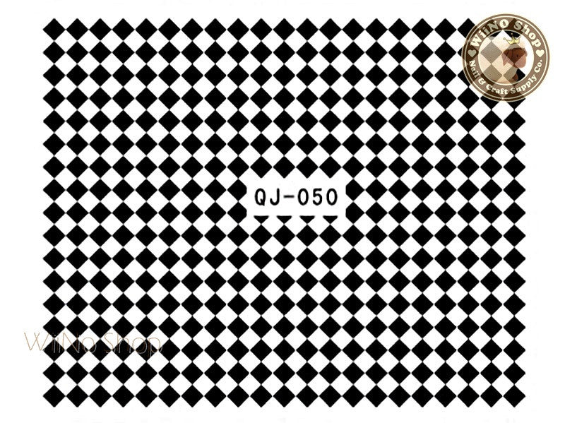 Black Checker Water Slide Nail Art Decals - 1pc (QJ-050)