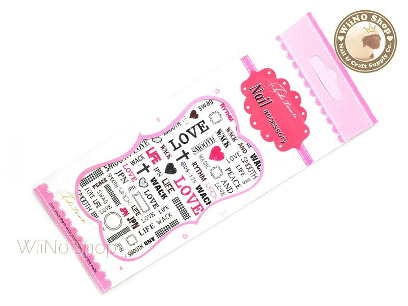 Black Love Life Text Water Slide Nail Art Decals - 1 pc (DS-175)