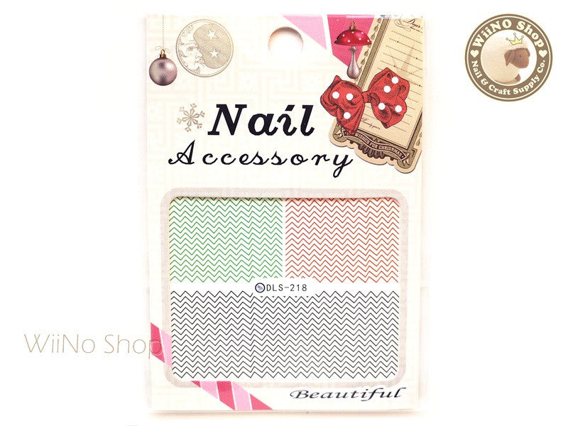 Green Red Black Chevron Pattern Water Slide Nail Art Decals - 1pc (DLS-218)