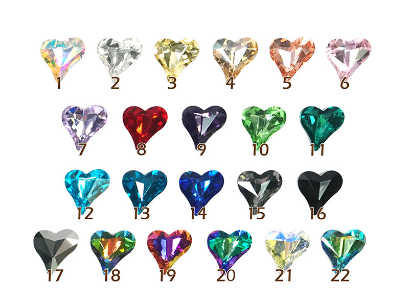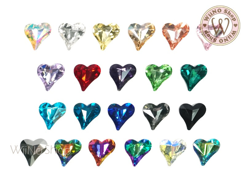 12 x 13mm Lopsided Heart 3D Back Crystal - 5 pcs