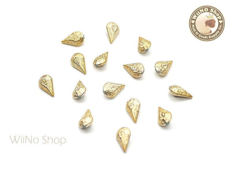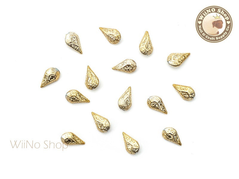 8 x 5mm Gold Textured Drop 3D Point Back Rhinestone - 10 pcs