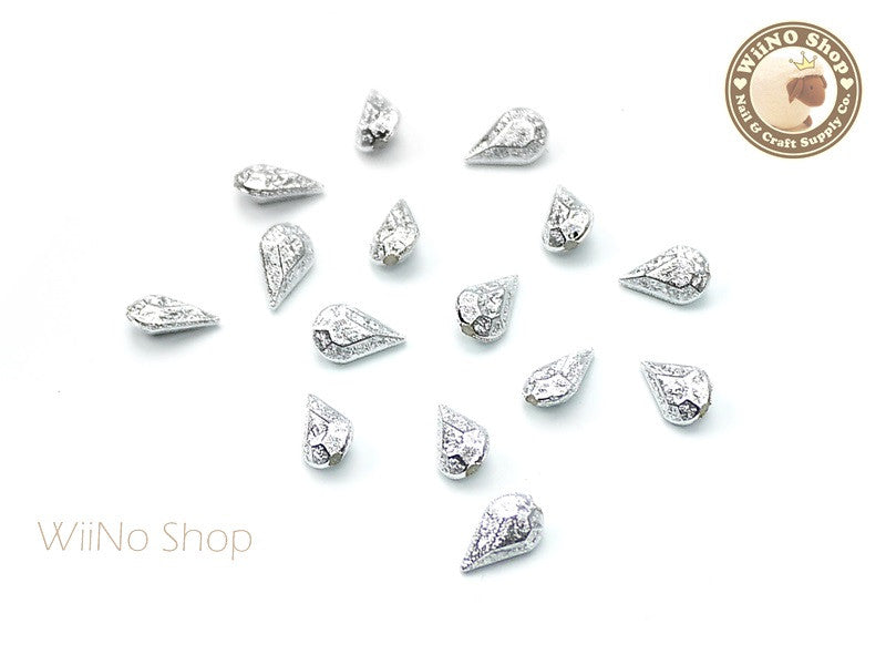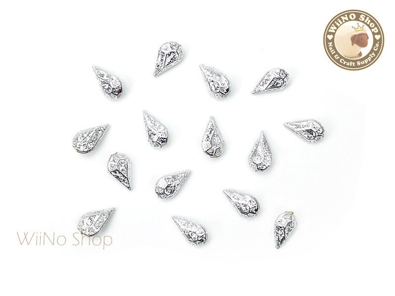 8 x 5mm Silver Textured Drop 3D Point Back Rhinestone - 10 pcs