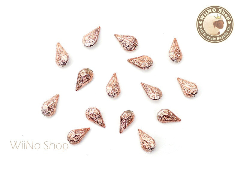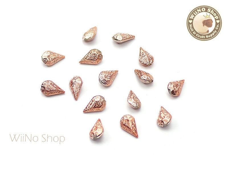 8 x 5mm Rose Gold Textured Drop 3D Point Back Rhinestone - 10 pcs