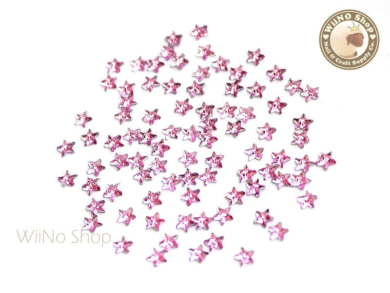 3mm Pink Rose Star Flat Back Acrylic Rhinestone Nail Art - 100 pcs