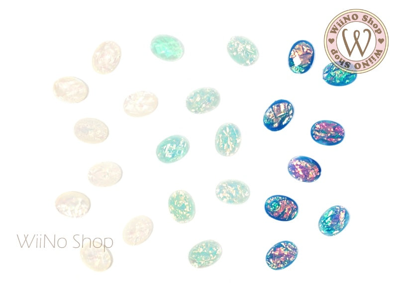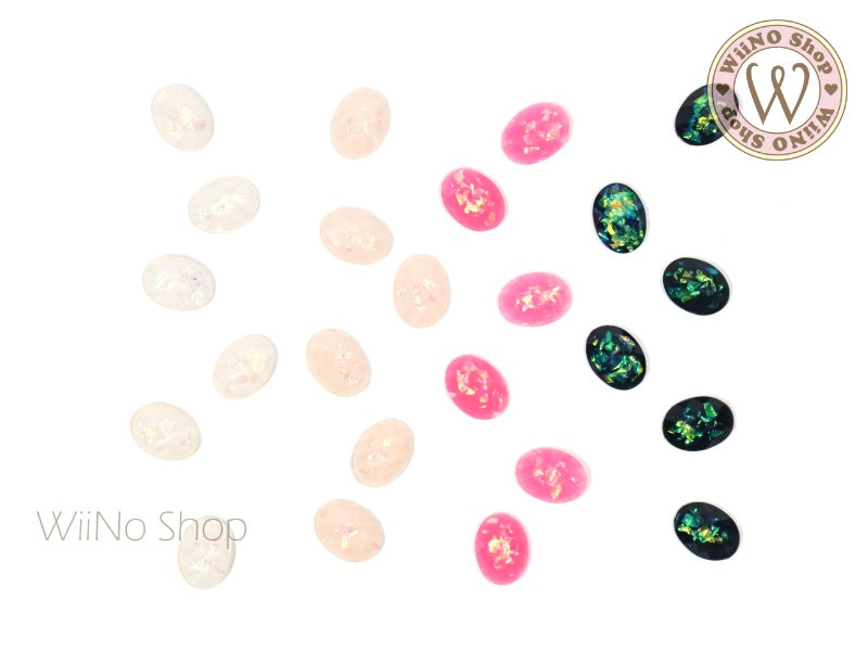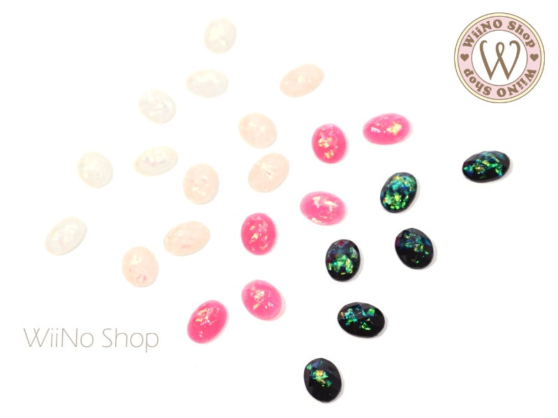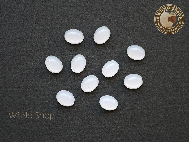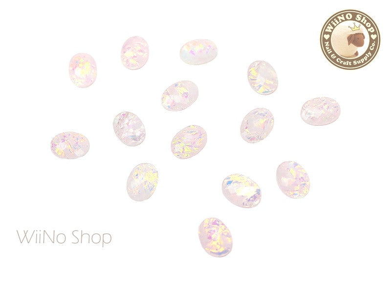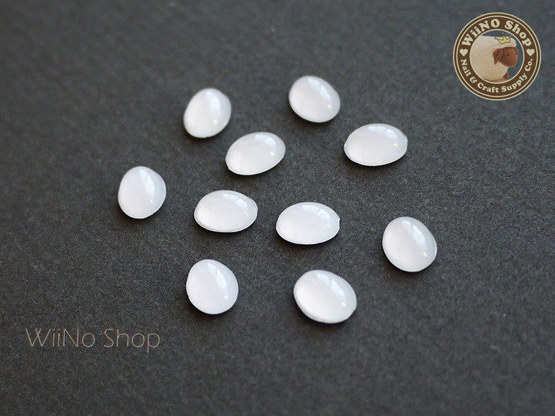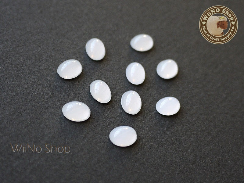 6 x 8mm Oval White Opal Flat Back Acrylic Cabochon Nail Art - 15 pcs