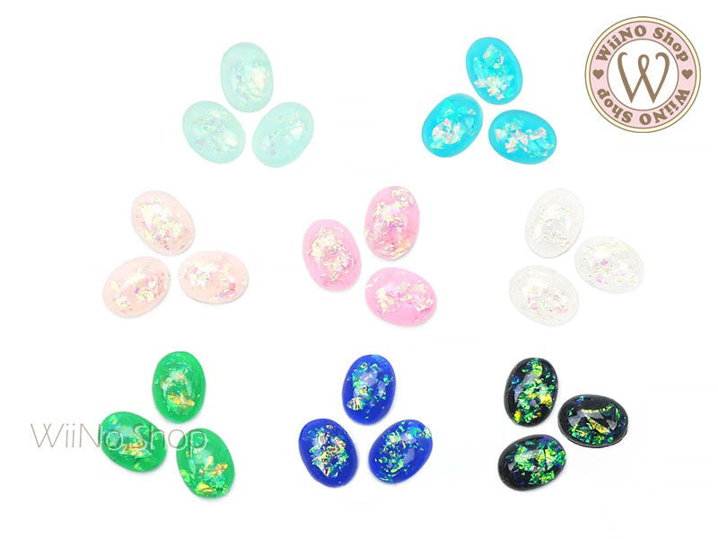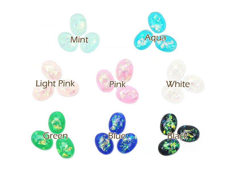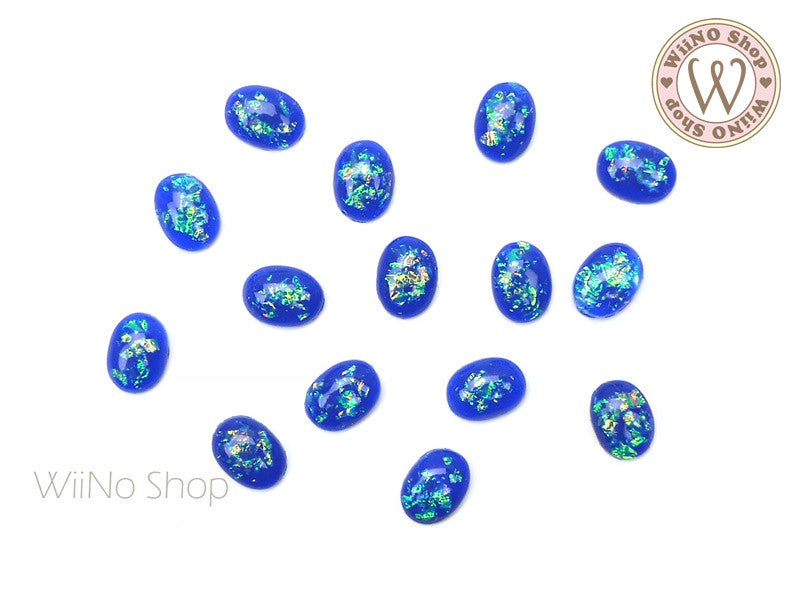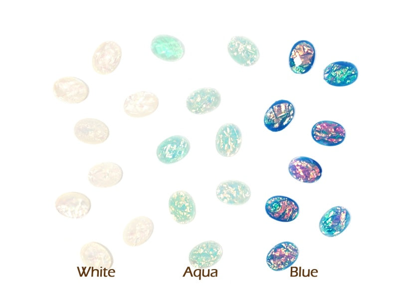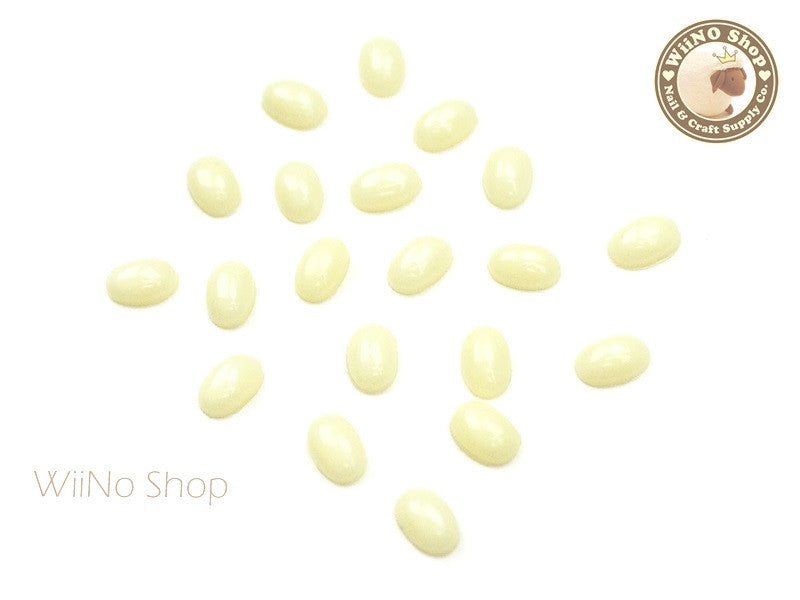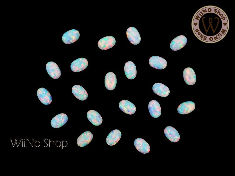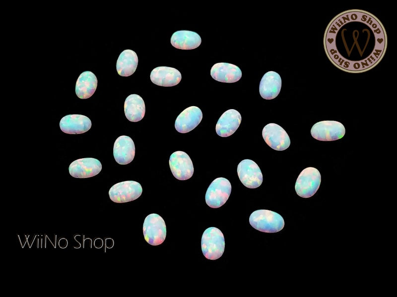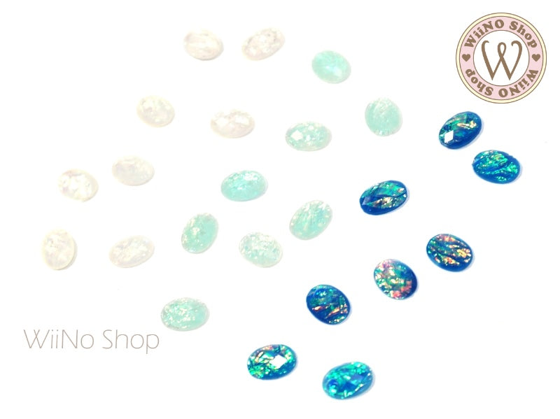 6 x 8mm Oval White Opal Flat Back Acrylic Cabochon Nail Art - 15 pcs
