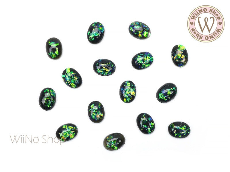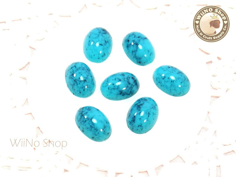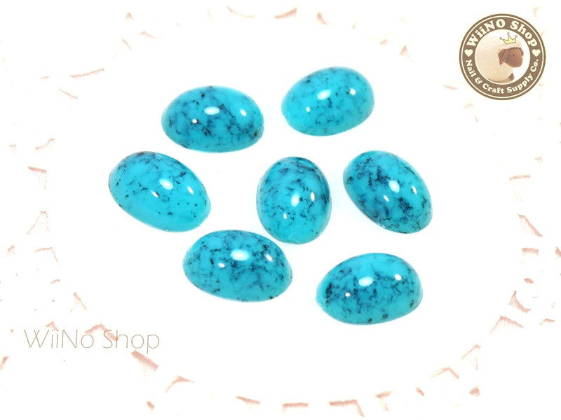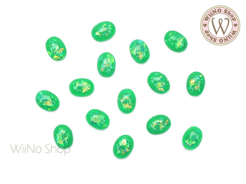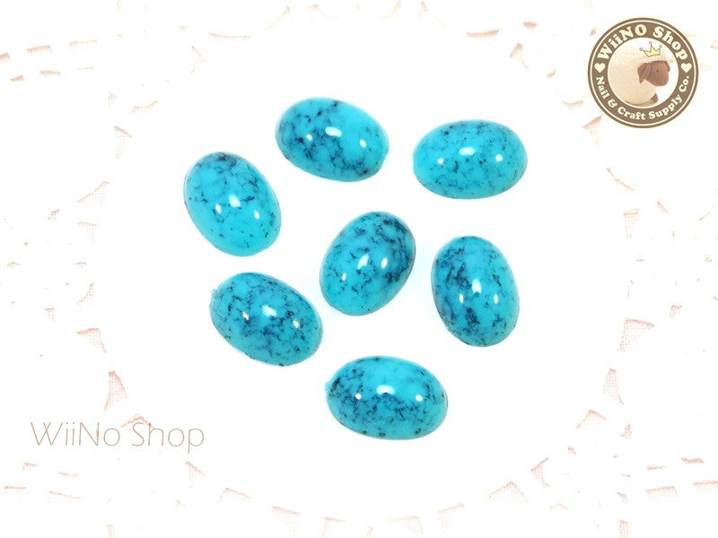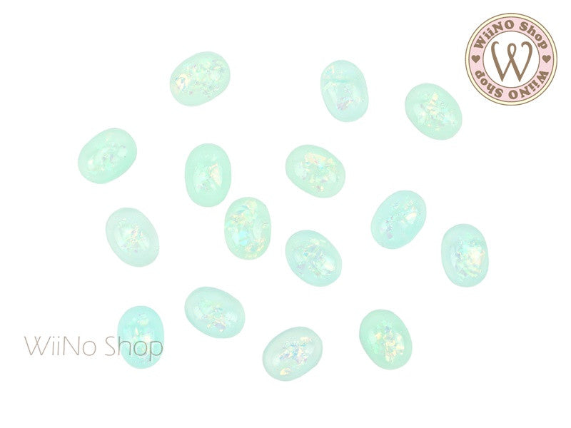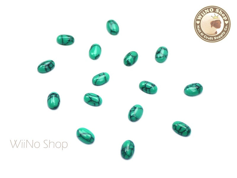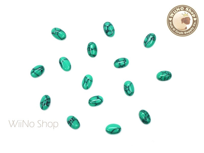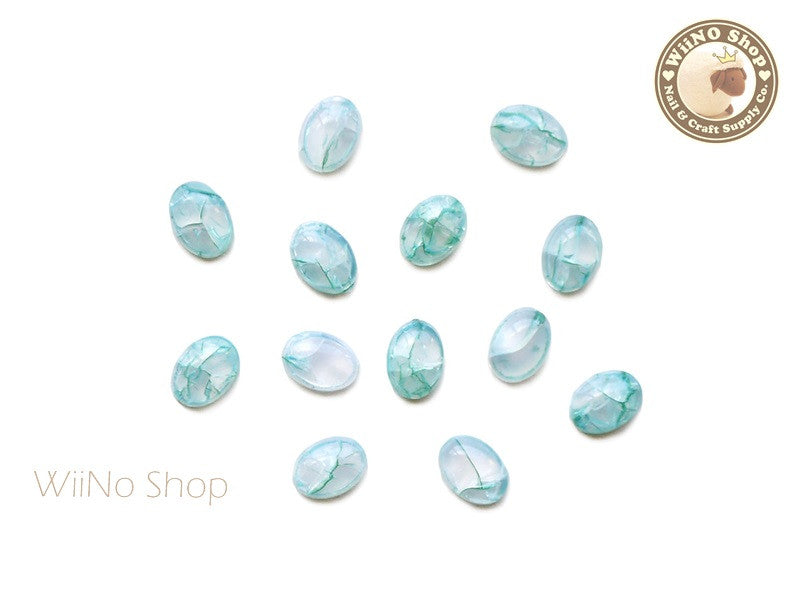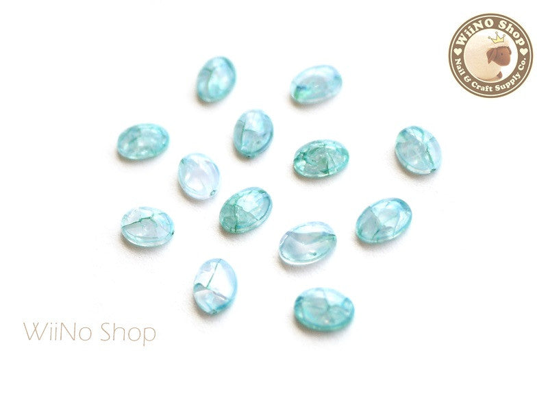 6 x 8mm Teal Green Ice Crackle Oval Flat Back Acrylic Cabochon Nail Art - 10 pcs