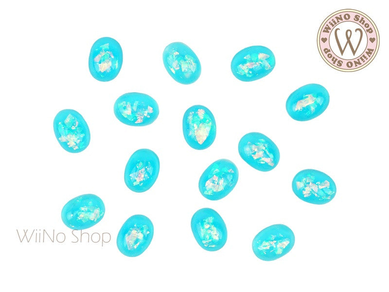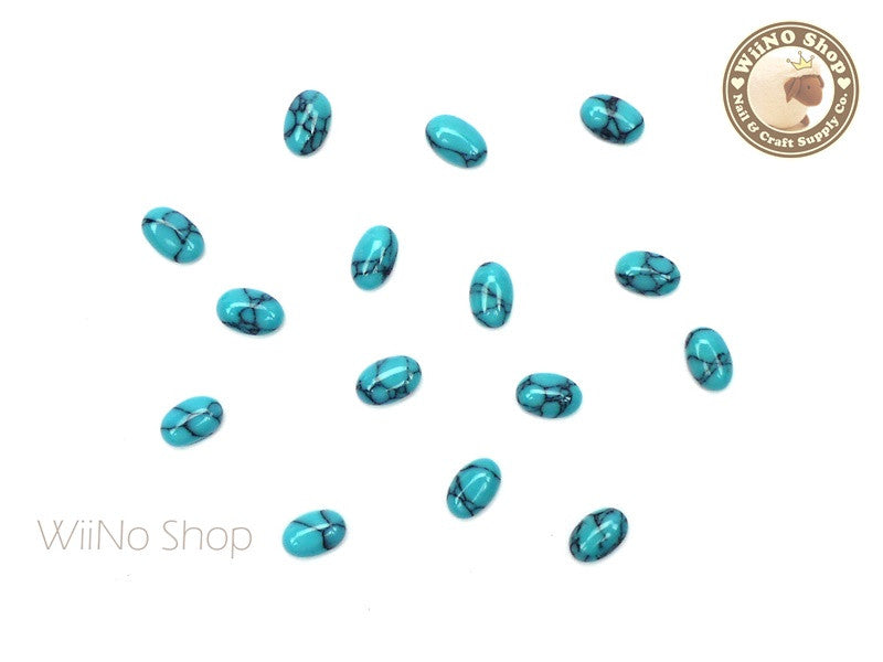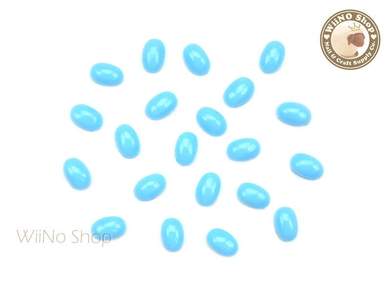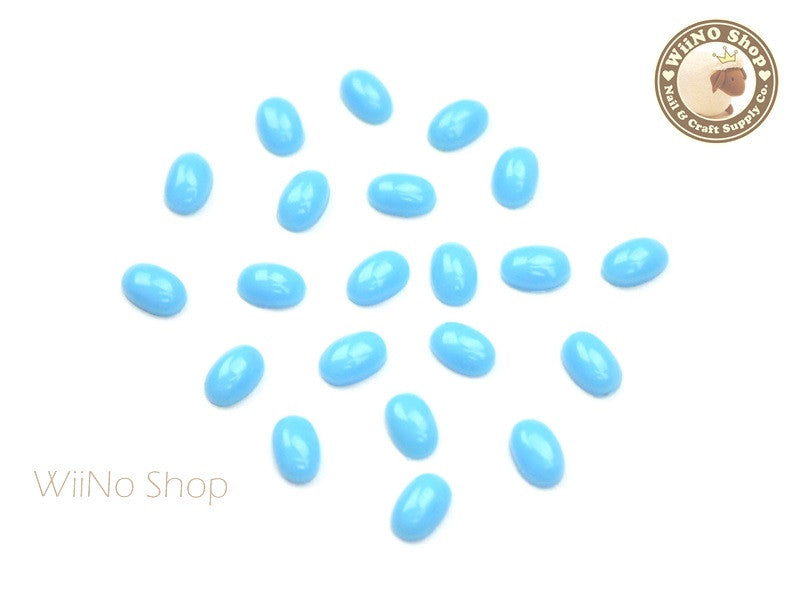 6 x 8mm Oval Light Turquoise Flat Back Acrylic Cabochon Nail Art - 15 pcs