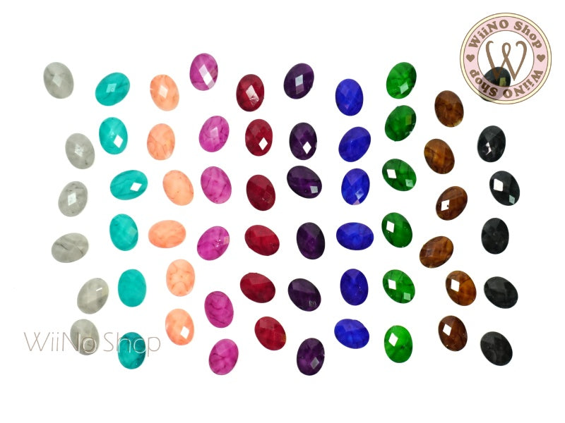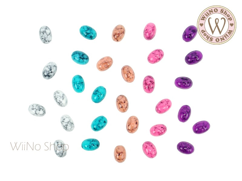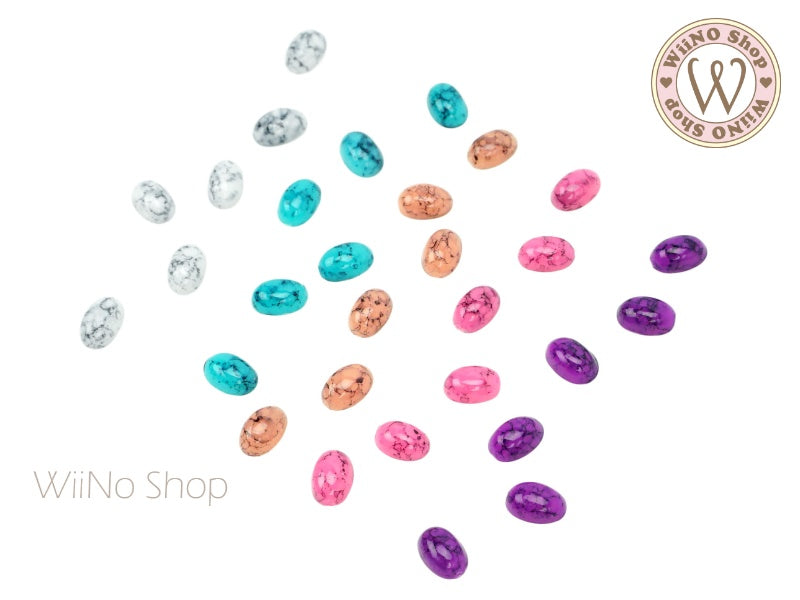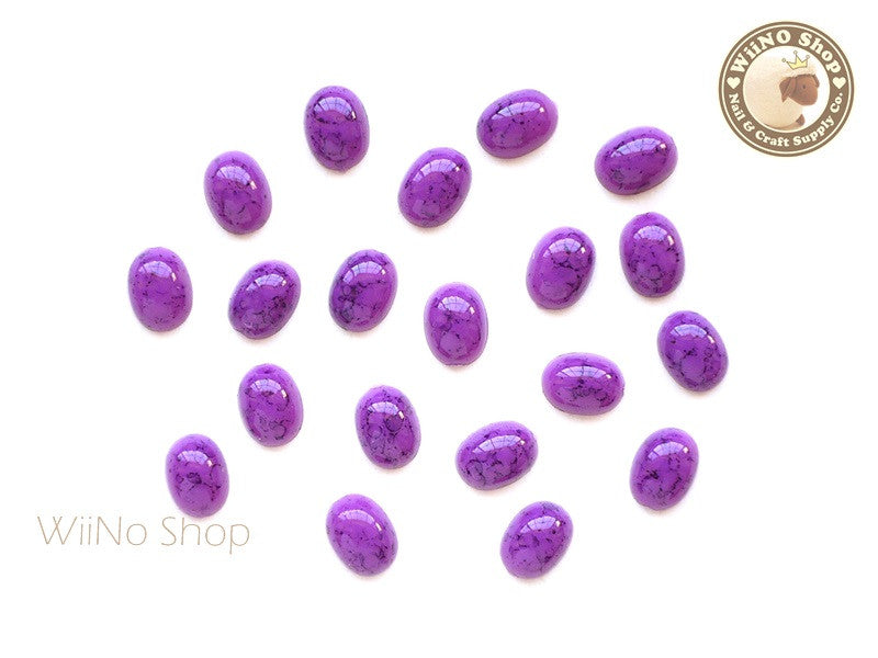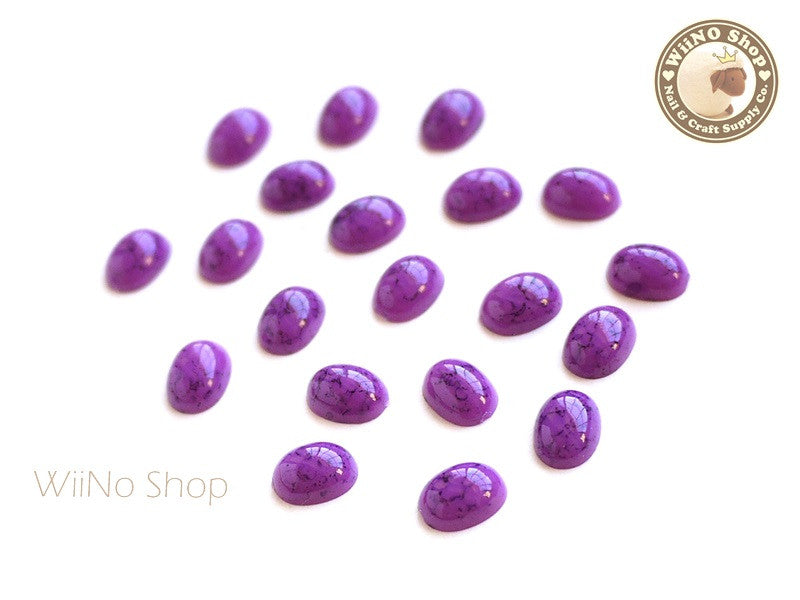 6 x 8mm Oval Purple Turquoise Flat Back Acrylic Cabochon Nail Art - 15 pcs