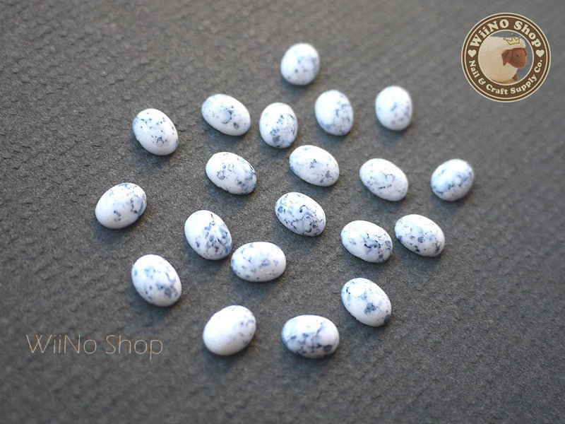 6 x 8mm Oval White Turquoise Flat Back Acrylic Cabochon Nail Art - 15 pcs