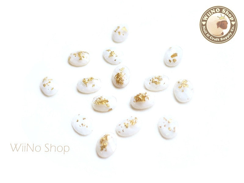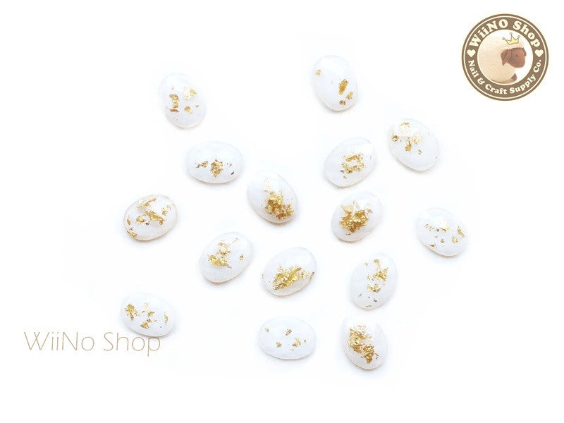6 x 8mm White Gold Foil Glitter Oval Flat Back Acrylic Nail Art Rhinestone - 10 pcs