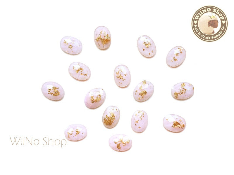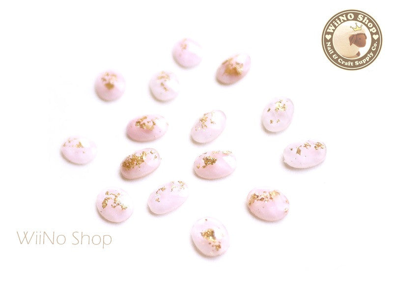 6 x 8mm Pink Gold Foil Glitter Oval Flat Back Acrylic Nail Art Rhinestone - 10 pcs