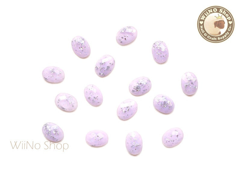 6 x 8mm Purple Silver Foil Glitter Oval Flat Back Acrylic Rhinestone Cabochon Nail Art - 10 pcs