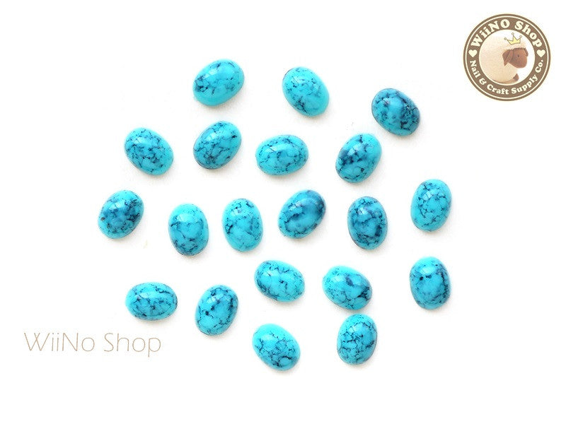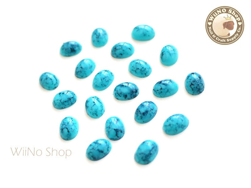 6 x 4mm Blue Turquoise Oval Gemstone Cabochon - 10 pcs