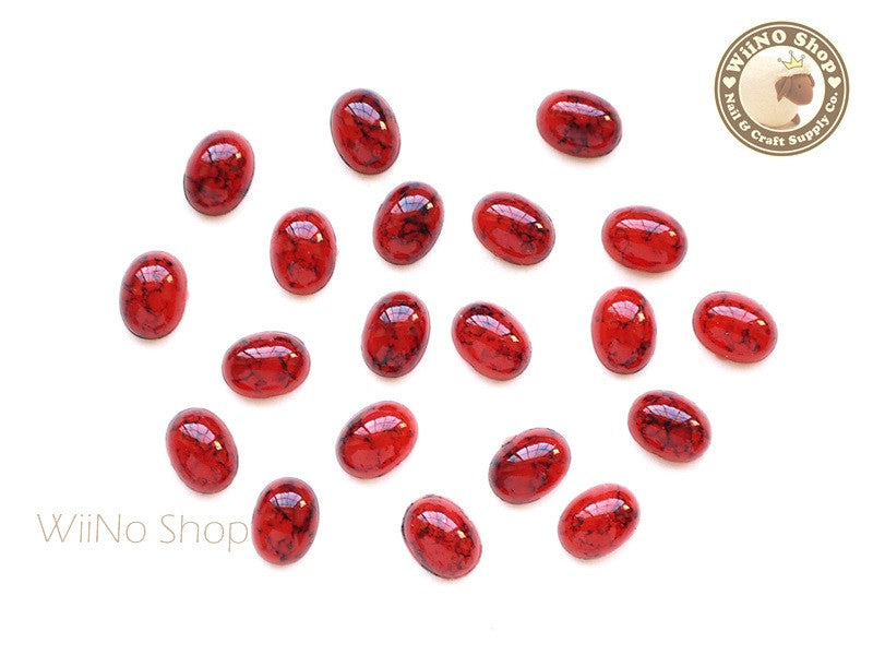 6 x 8mm Red Ice Crackle Oval Flat Back Acrylic Cabochon Nail Art - 10 pcs