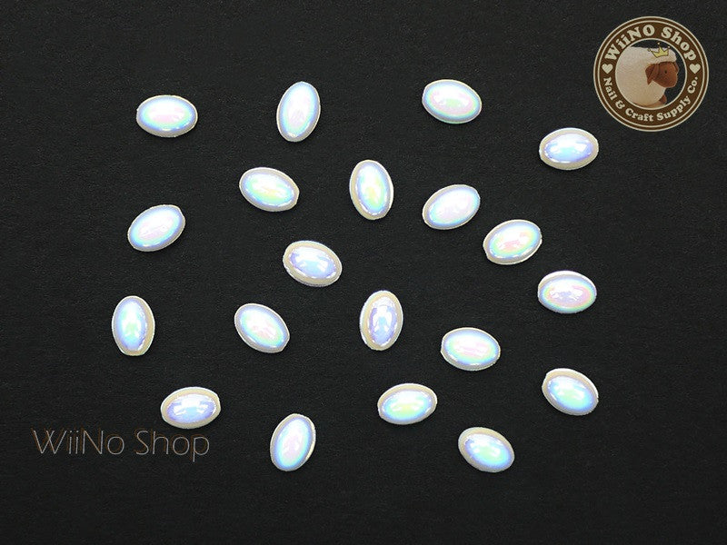 4 x 6mm AB White Oval Flat Back Acrylic Cabochon Nail Art - 15 pcs