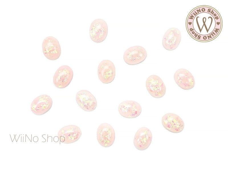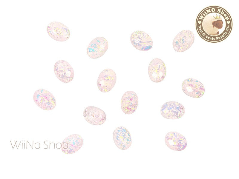 6 x 8mm Light Pink Rainbow Ice Oval Acrylic Rhinestone Cabochon - 10 pcs