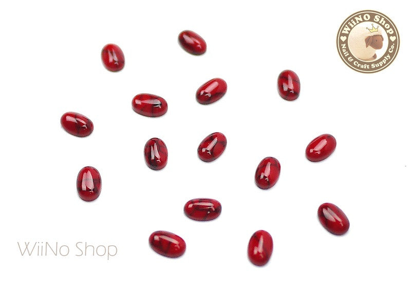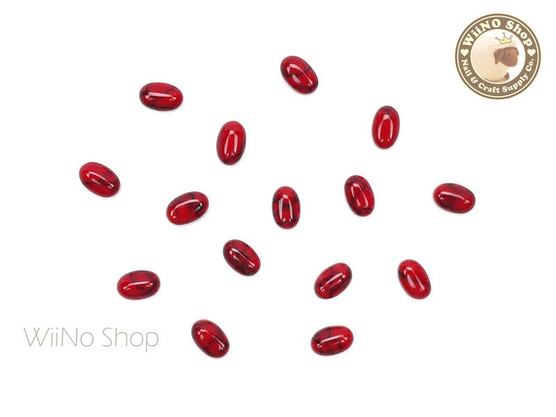 6 x 8mm Oval Red Turquoise Flat Back Acrylic Cabochon Nail Art - 15 pcs