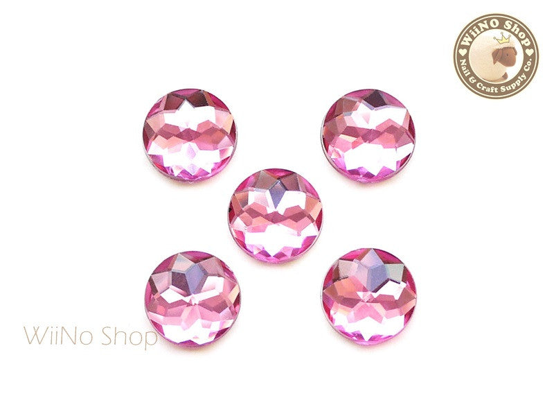 15mm Pink Rose Round Flat Back Acrylic Rhinestone - 5 pcs