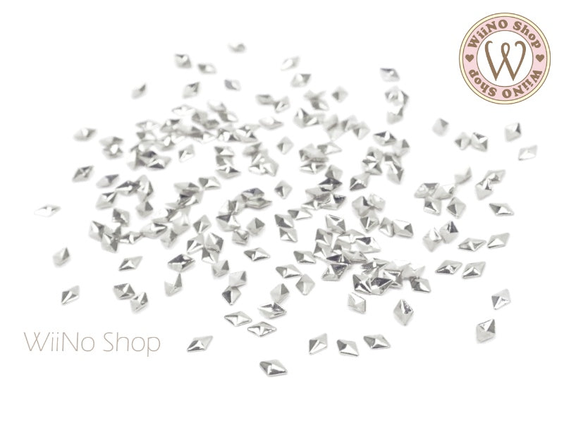 Silver Diamond Shape Metal Studs - 25 pcs (1.5x2.5mm/2.5x4mm)